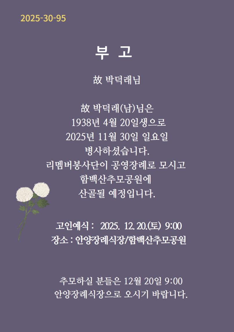 [부고] 12.20.(토)