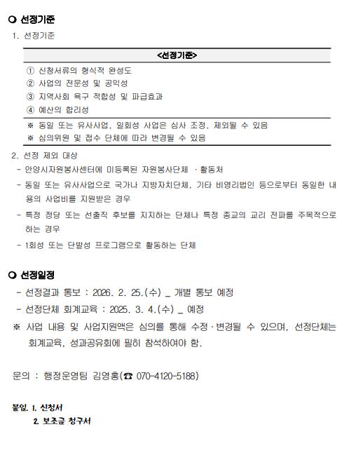 2026 자원봉사 우수프로그램 공모사업 모집 공고