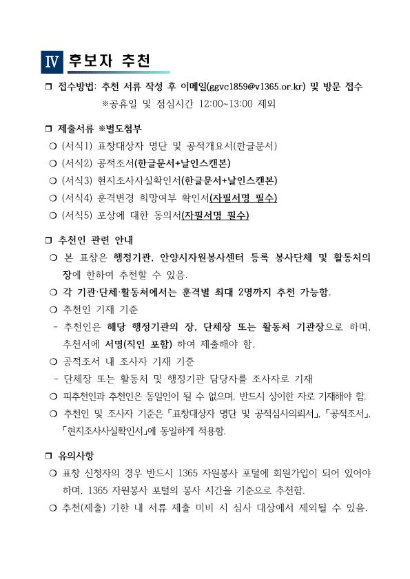 1분기 자원봉사 활성화 유공 표창 대상자 추천 공고