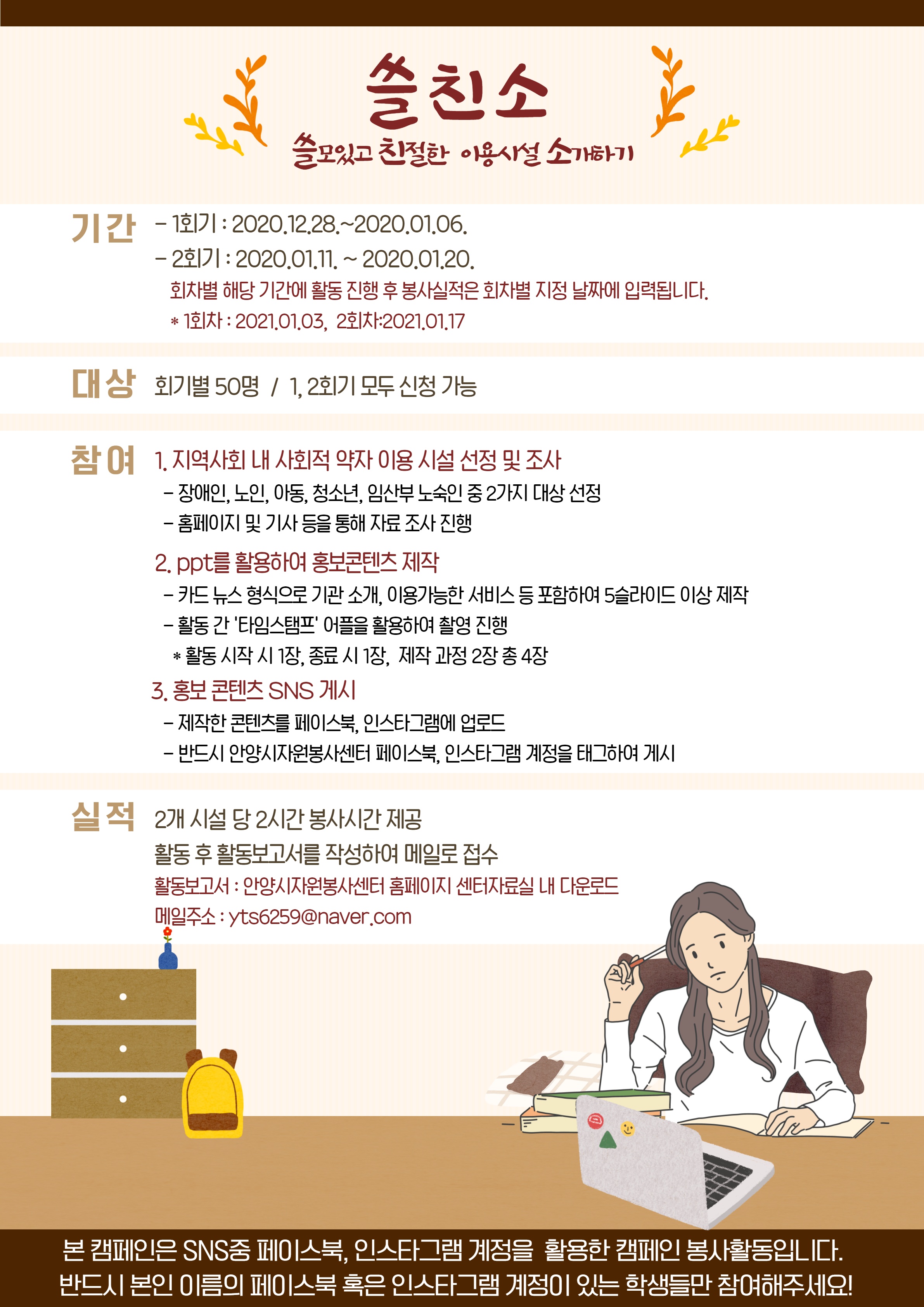[청소년겨울방학자원봉사프로그램] 쓸친소, 쓸모있고 친절한 이용시설 소개하기
