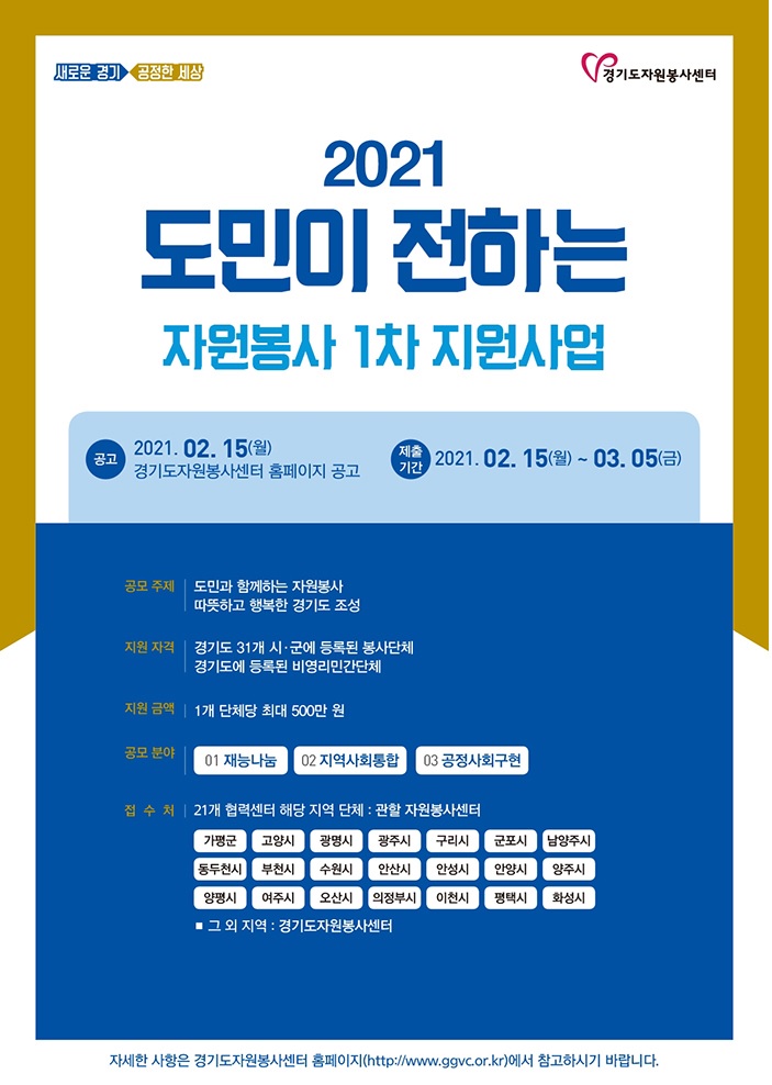 자세한 사항은 경기도자원봉사센터 홈페이지에서 참고하실 수 있습니다.