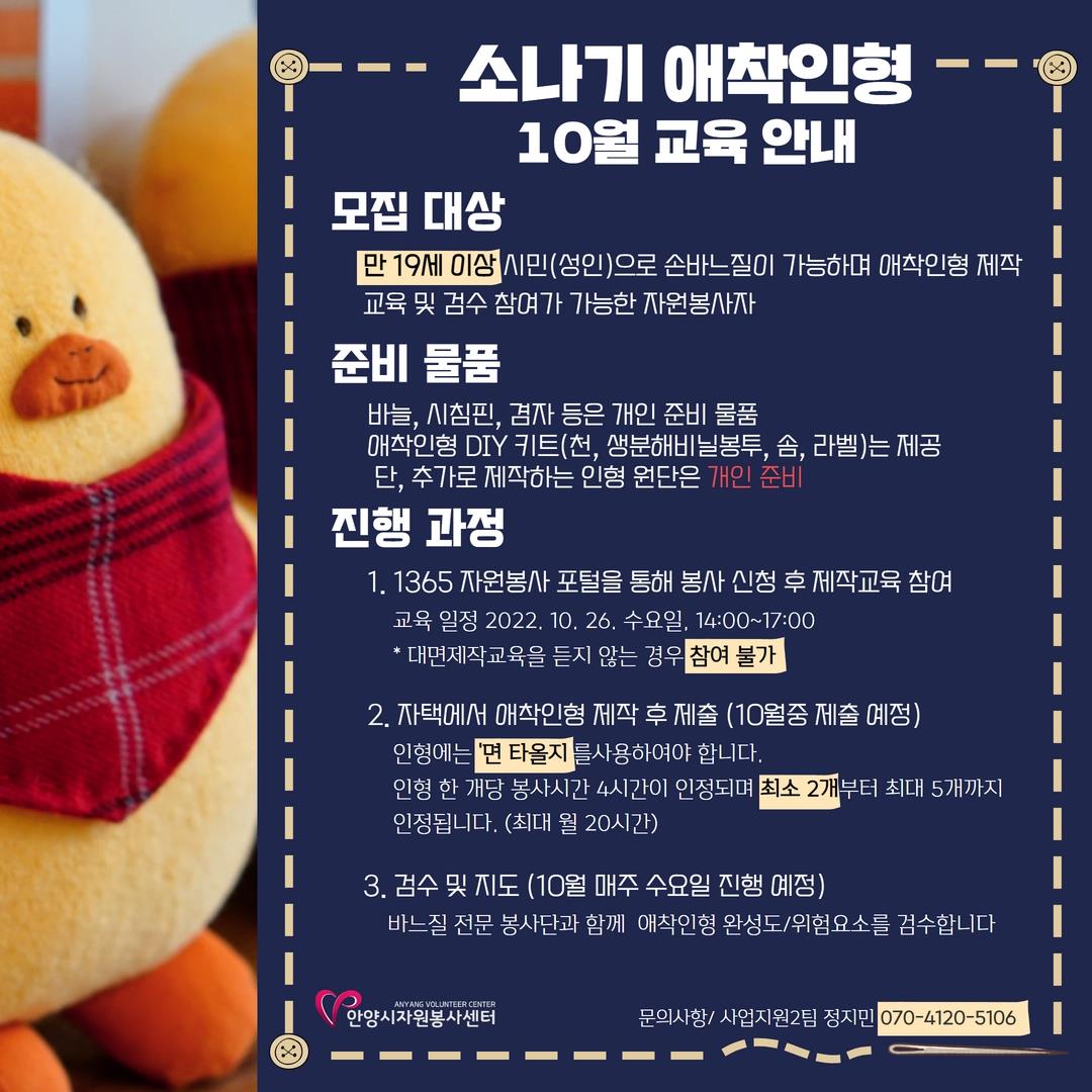 [모집안내] 2022 소나기(우리 일상의 소소한 나눔은 기쁨) - 애착인형(10월) 교육 및 제작