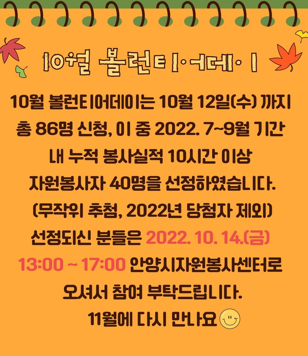 2022년 7~9월 기간 내 누적 봉사실적 10시간 이상 자원봉사자)