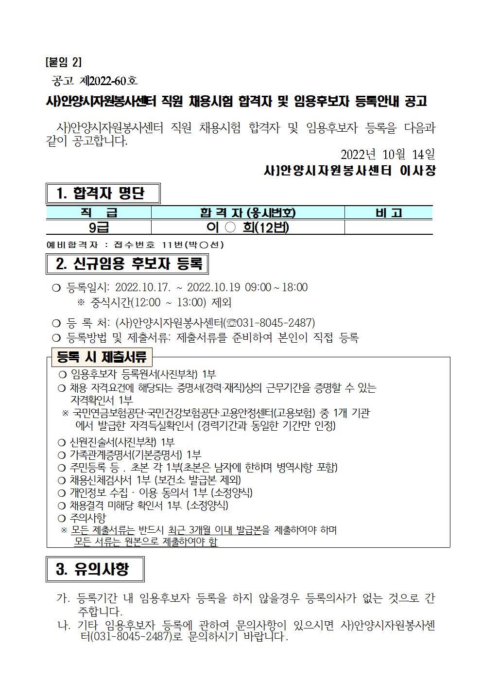 [공고] 9급 직원 채용시험 합격자 및 임용후보자 등록 안내