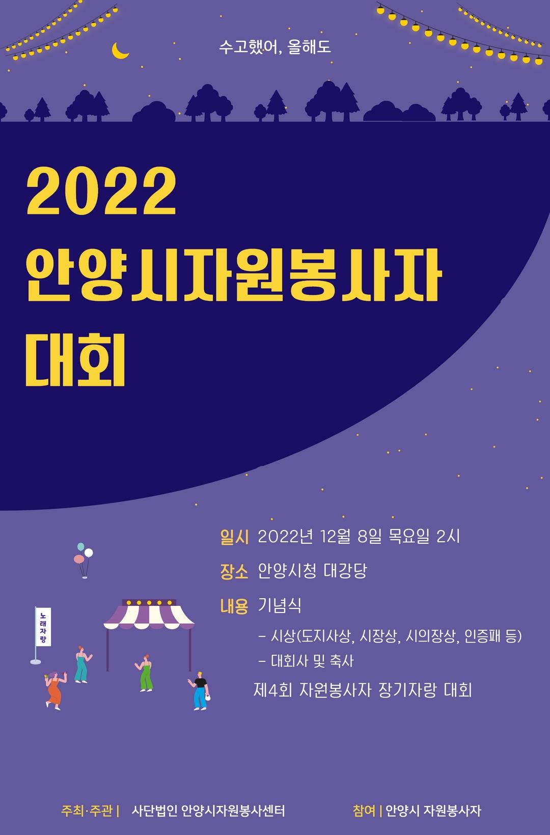 2022 안양시자원봉사자 대회가 12월 8일 안양시청 대강당에서 진행됩니다.