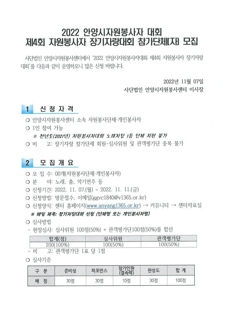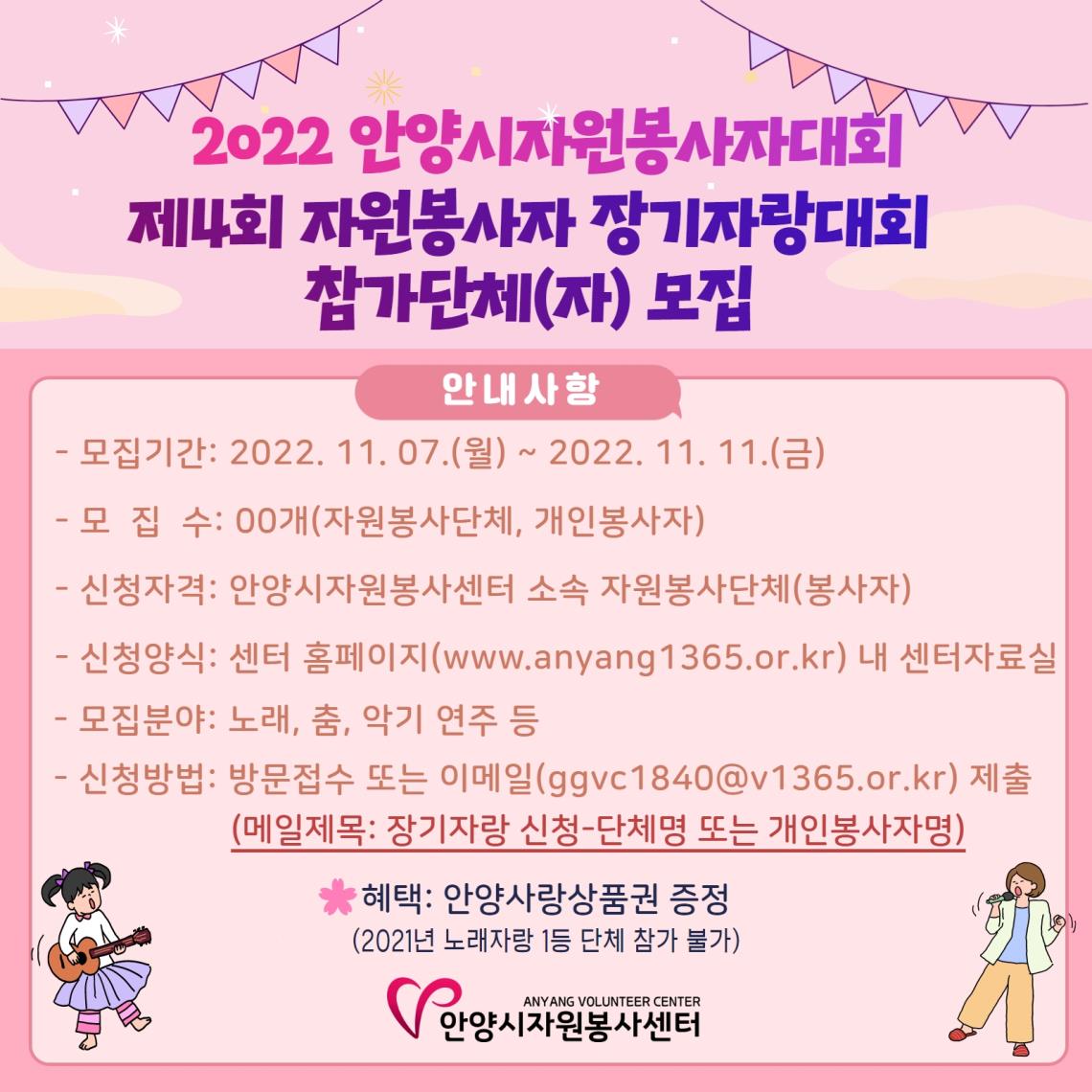 [안내] 2022 안양시자원봉사자대회 제4회 자원봉사자 장기자랑 대회 안내