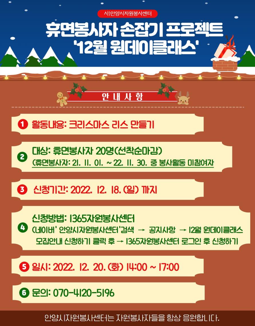 [2022. 12월 휴면봉사자 손잡기프로젝트 원데이클래스 신청안내]