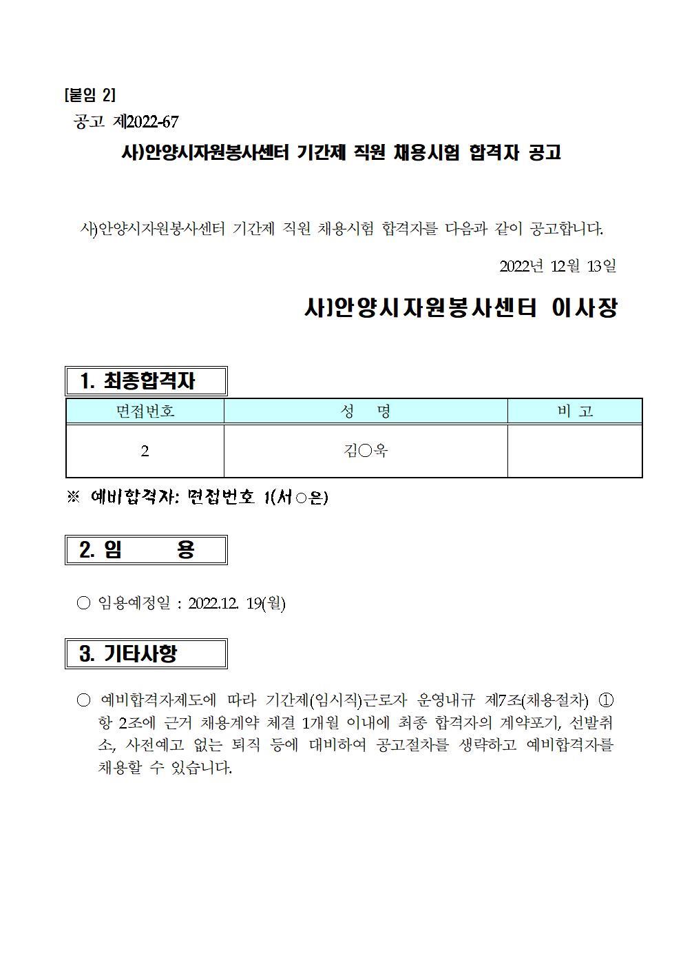 [공고]공동모금회 전담인력 직원채용 최종합격자 공고