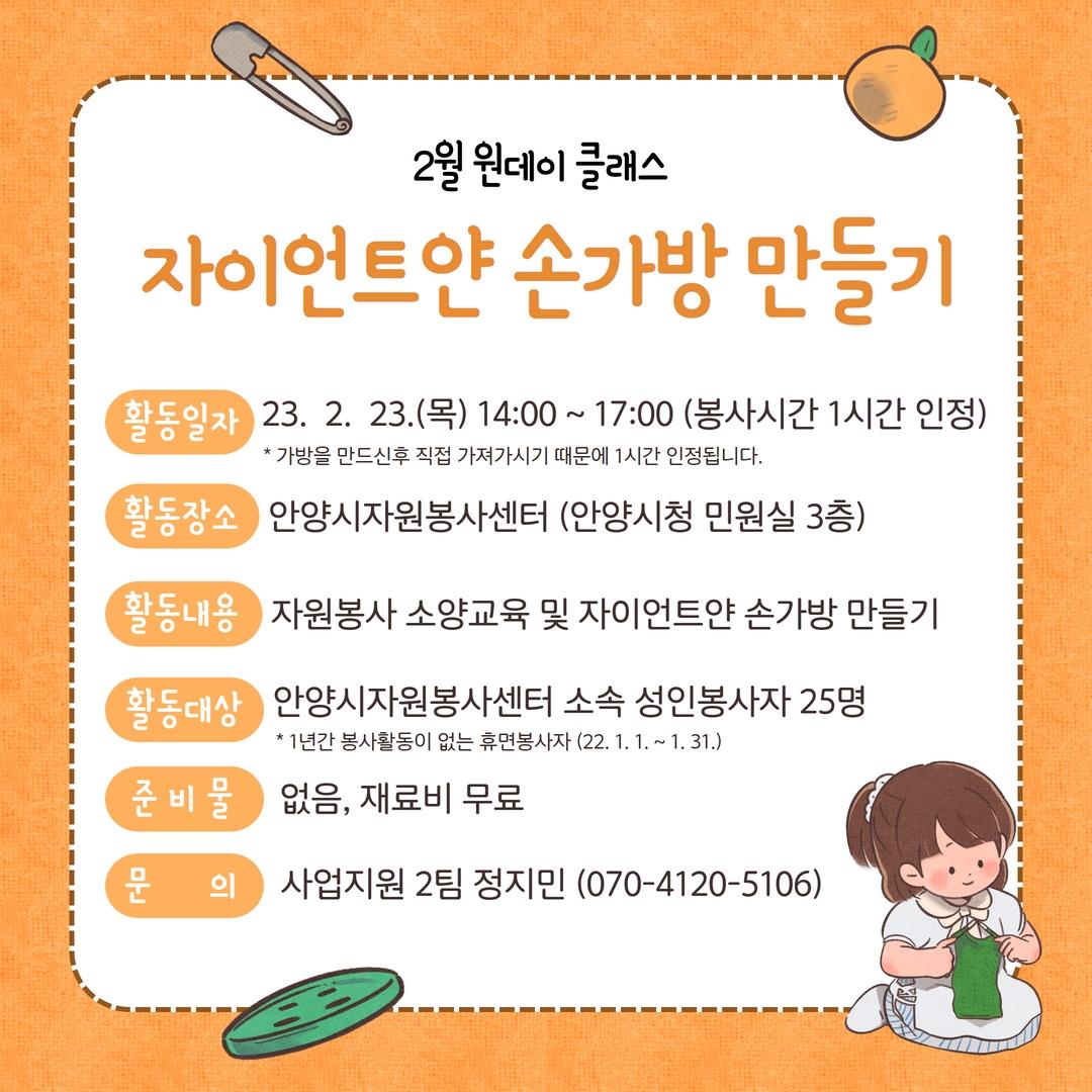[2023. 2월 휴면봉사자 손잡기프로젝트 원데이클래스 신청안내]