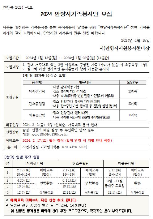 2024. 안양시가족봉사단 모집 공고