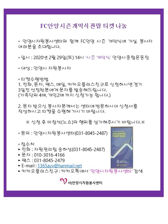 안양시자원봉사센터와 함께 FC안양 시즌 개막식에 가실 봉사자 여러분을 초대합니다~