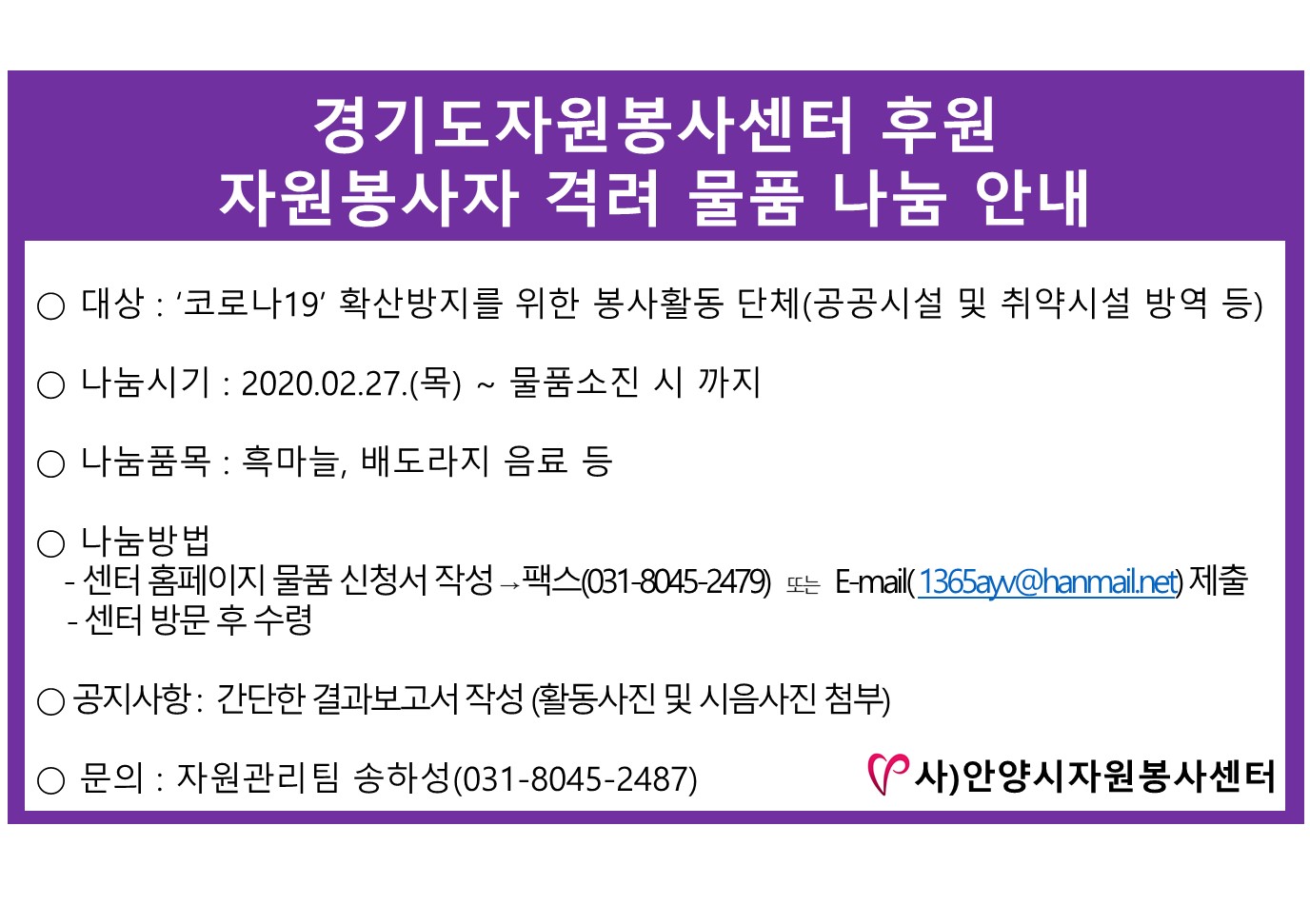 방역 봉사활동 단체 격려 물품 나눔 안내-종료되었습니다