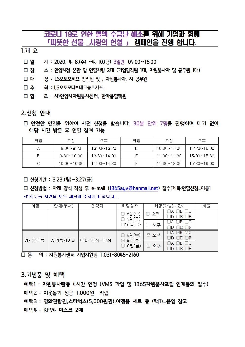 [신청기간연장~4월5일]사랑의 헌혈캠페인에 참여해주세요!