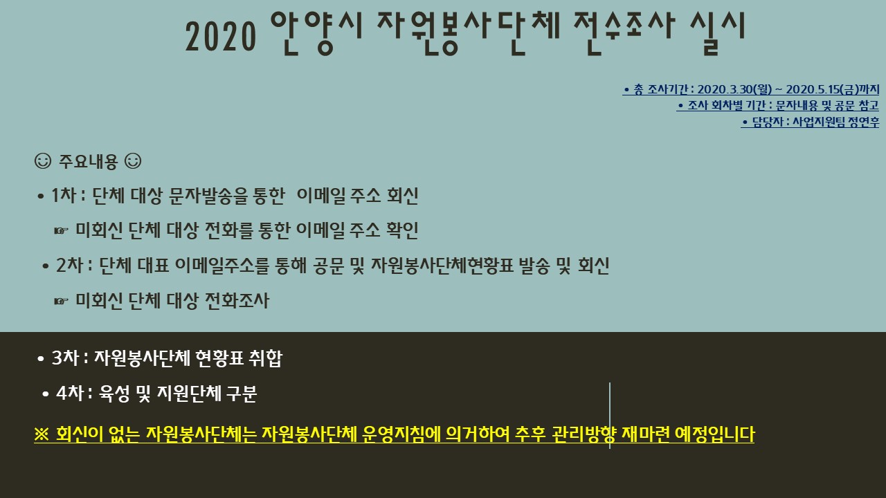 2020 자원봉사 단체 전수조사에 따라 현황표를 작성하신 후