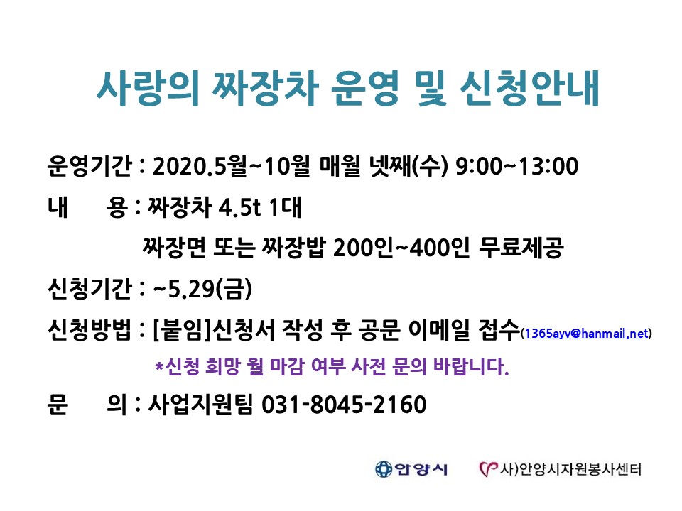 사랑의 짜장차 운영 및 신청안내(~5.29)