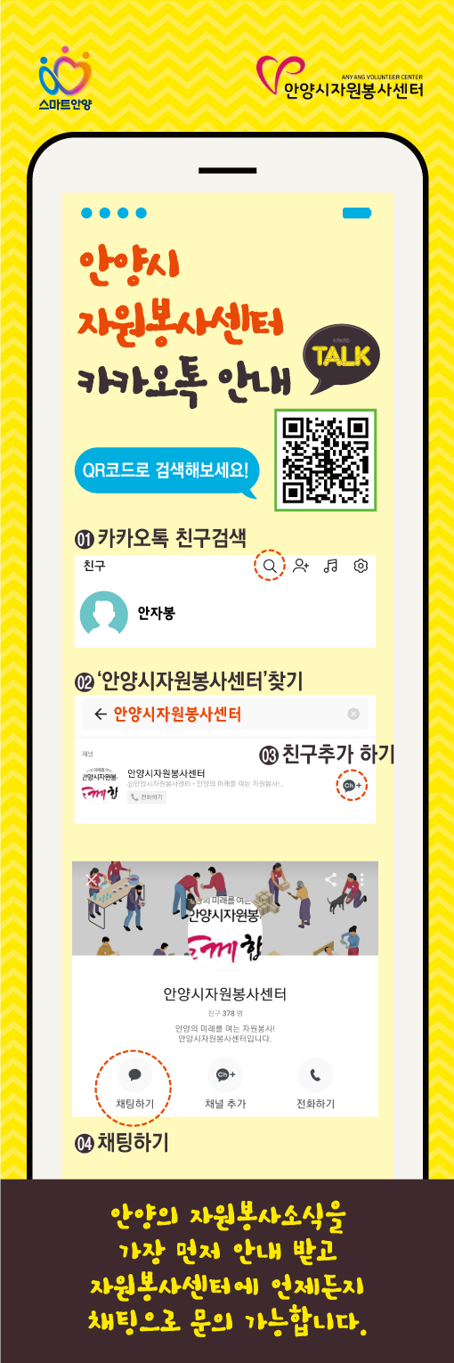 안양시자원봉사센터 카카오톡 친구추가 안내
