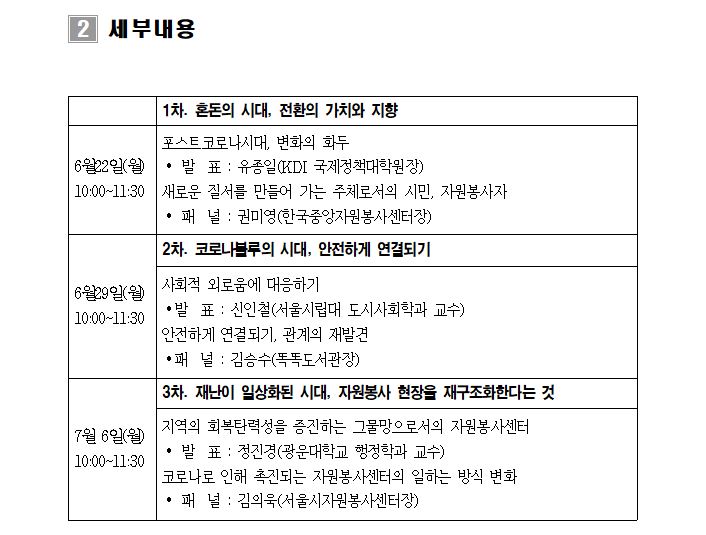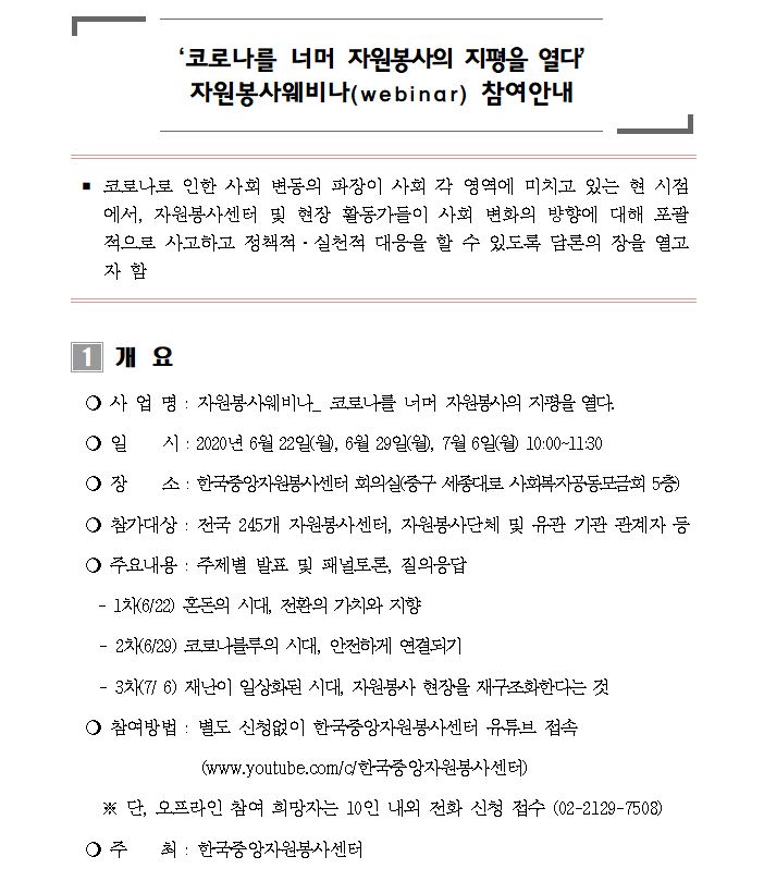 '코로나를 너머 자원봉사의 지평을 열다' 자원봉사웨비나(Webinar) 참여안내