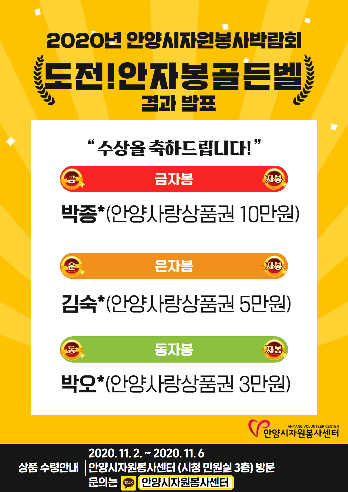 2020년 자원봉사박람회 도전! 안자봉골든벨 수상자 발표