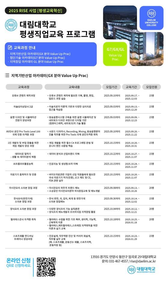 RISE사업 추진 관련 대림대학교 평생교육혁신 프로그램 홍보