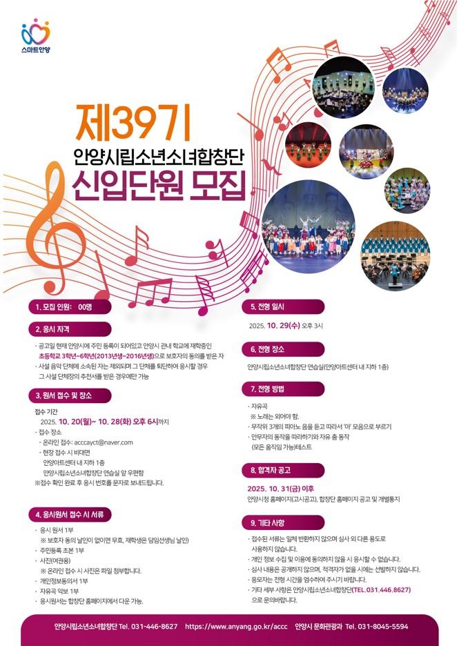 안양시립소년소녀합창단 제39기 신입단원 모집안내 및 홍보