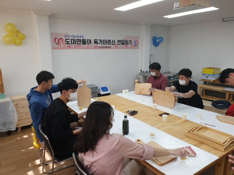 * 내 용 : 기업사회공헌활동, 도마 만들어 독거 어르신에게 전달.