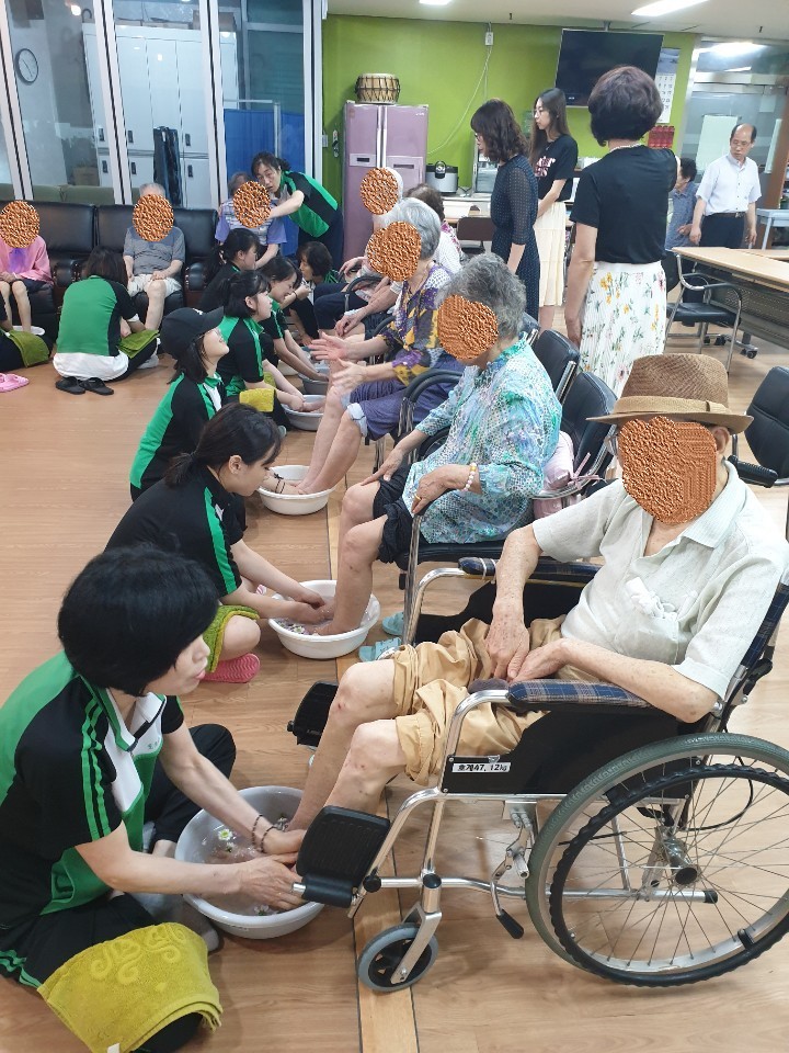내용 : 어르신들에게 발마사지 봉사활동 실시