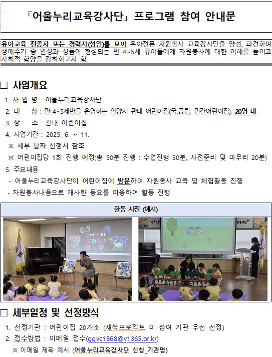 안양형 새싹 프로젝트 · 어울누리 봉사단