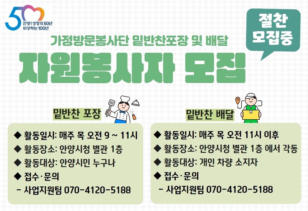 가정방문봉사단 밑반찬 포장 및 배달 봉사자를 모집합니다 !