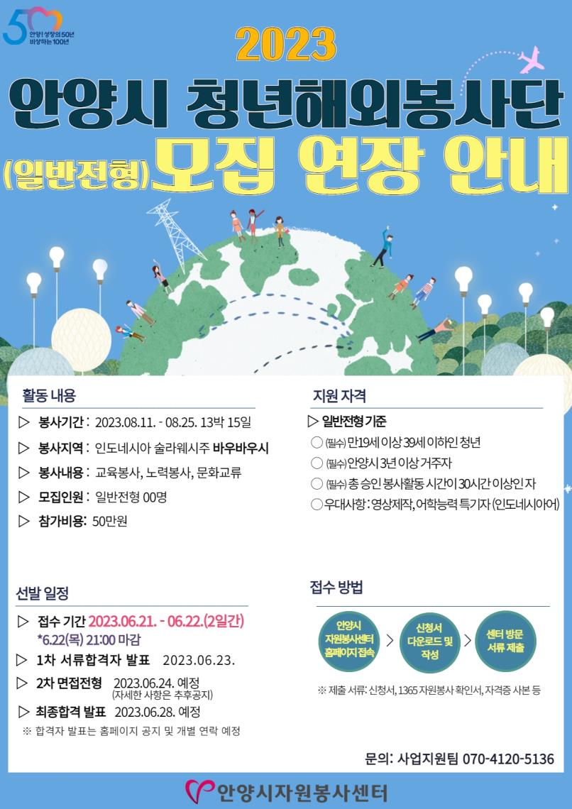 2023안양시 청년해외봉사단 일반전형 모집 연장 안내