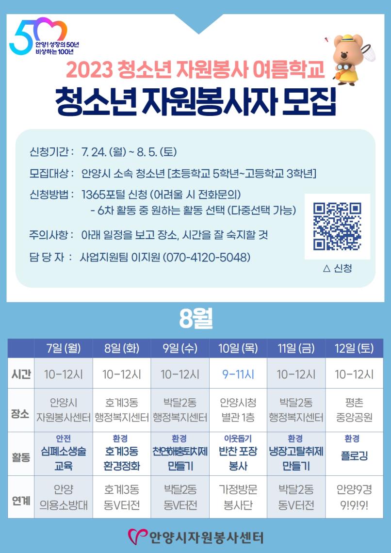 2023 청소년 자원봉사 여름학교 자원봉사자 모집 ]