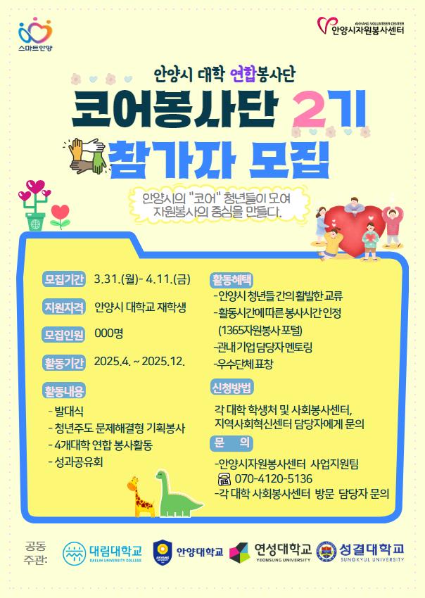 7.문의: 안양시자원봉사센터 사업지원팀(070-4120-5136) 8.신청방법: 대학 사회봉사센터 방문하여 담당자에게 문의