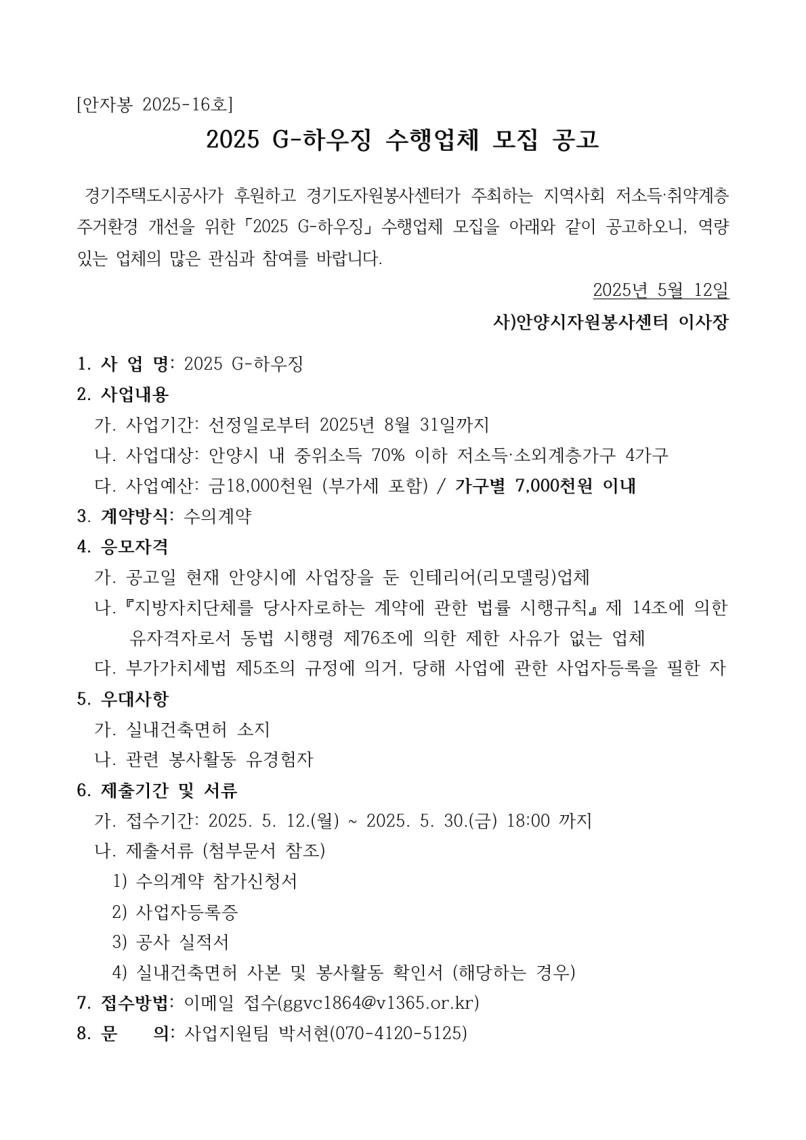 [2025 G-하우징] 수행업체 모집 공고