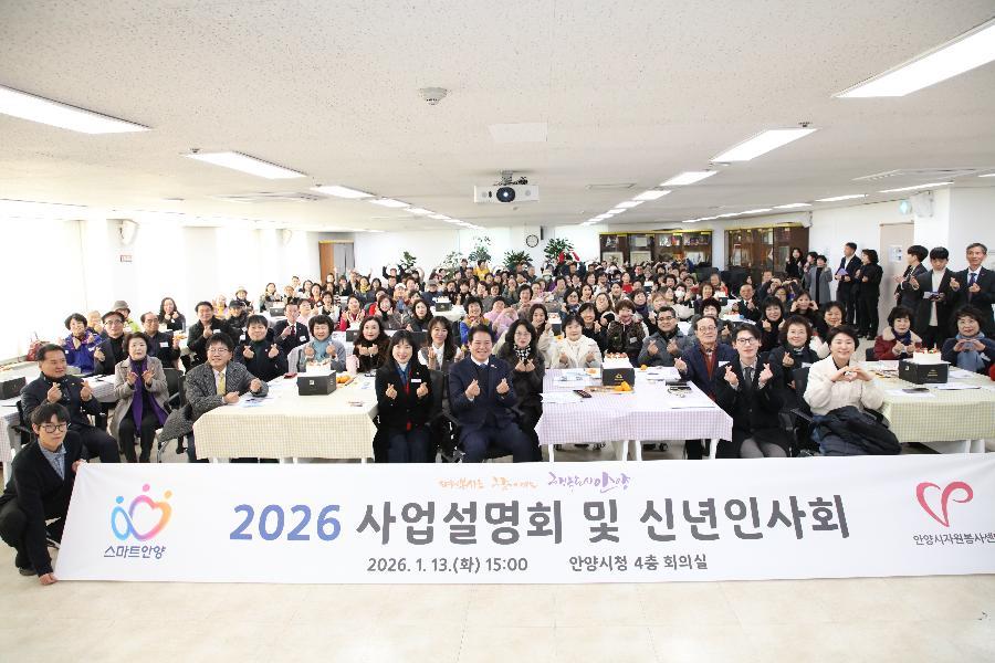 13일 오후, 2026년 한 해 동안 우리 안양을 더 밝게 만들 '사업설명회 및 신년인사회' 가 안양시청 회의실에서 150여 명의 자원봉사자분들이 함께하여 뜨거운 열기로 가득 찼습니다!