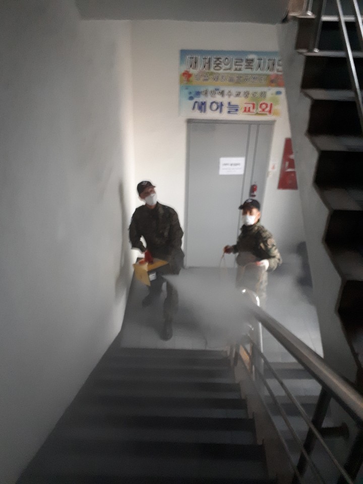 안양특전사동지회 특수방역단이 코로나 19 예방을 위해 안양 각지에서 방역활동을 실시하였습니다.