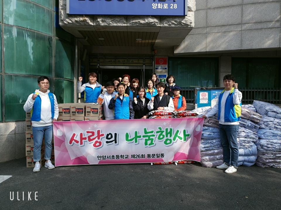 내 용 : 안양서초등학교 26회졸업생과 함께 관내 100가구(독거어르신 66가구, 서초등학교 34가구) 생필품 전달