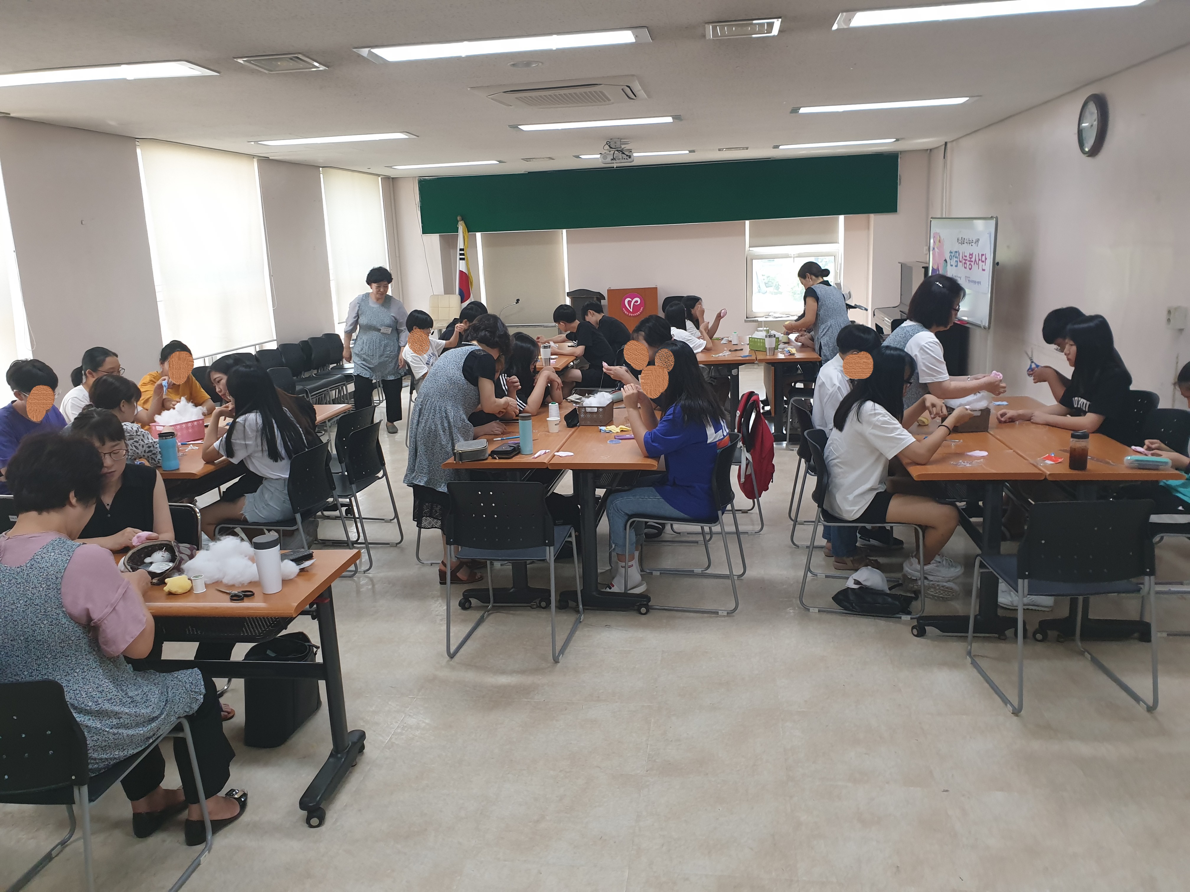 내 용 : 여름방학 틴볼스쿨 . 한땀나눔봉사단(회장 주옥식) 지도 _ 딸랑이 만들기