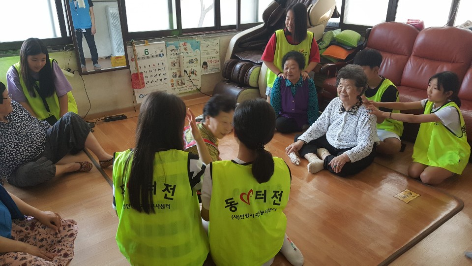 어르신들게 전달하고 어깨도 주무르면서 이야기를 나누는