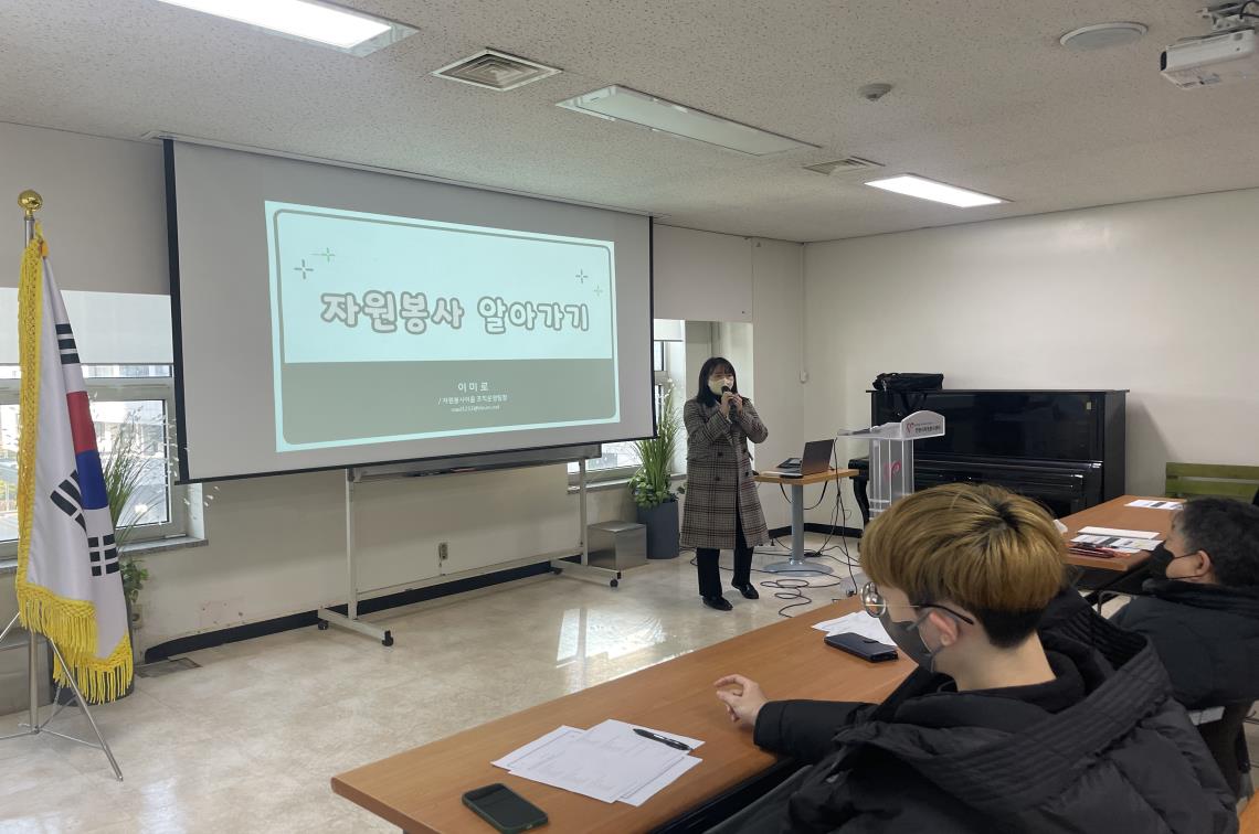 금일 1월 신규자원봉사자 소양교육을 진행하였습니다. 총 23명의 봉사자분들이 참여해주셨으며, 자원봉사의 자세 & 특성 등 자원봉사관련한 기초적인 내용을 자원봉사이음 이미로 조직운영팀장님께서 강의해주셨습니다.