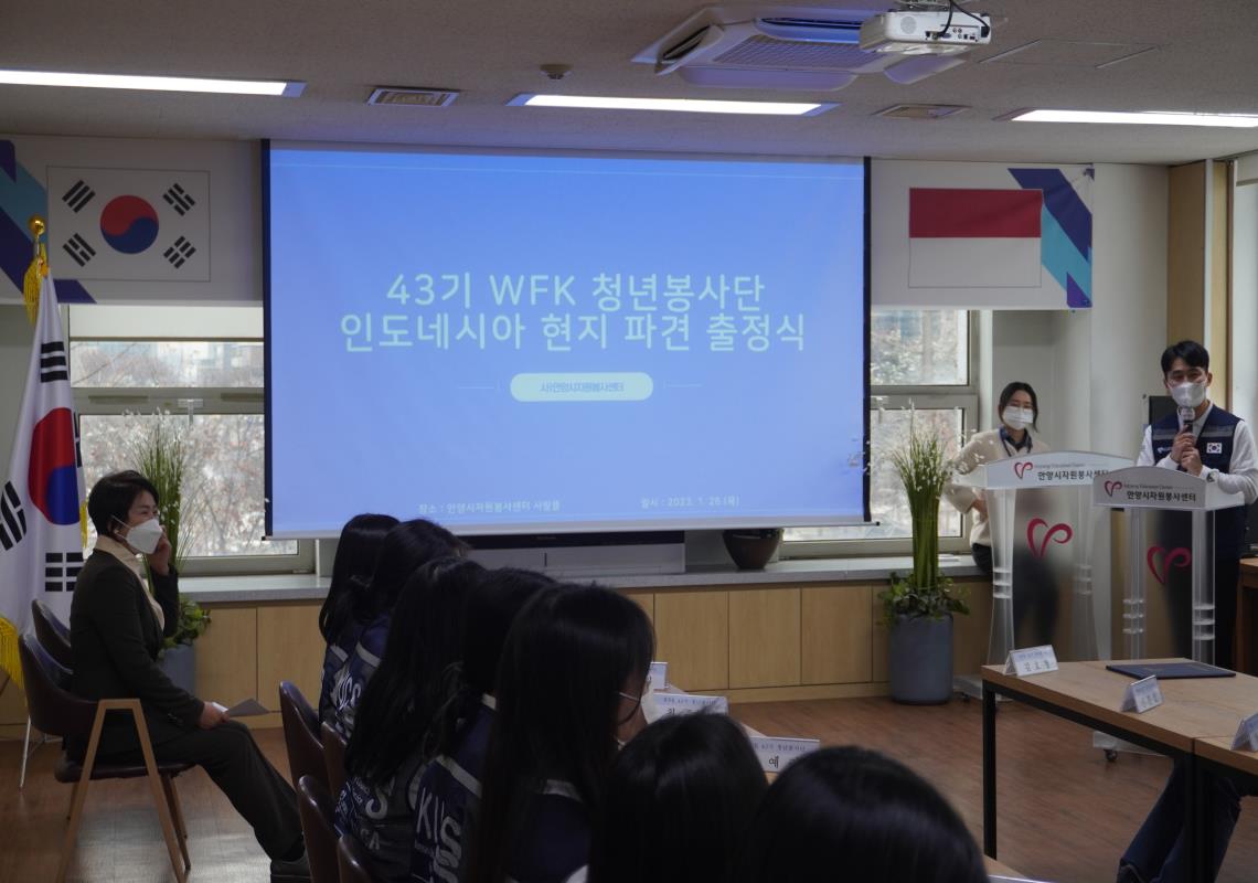 안양시자원봉사센터에서는 이번 겨울 WFK43기 봉사단 인도네시아 현지 파견 출정식을 진행하였습니다.