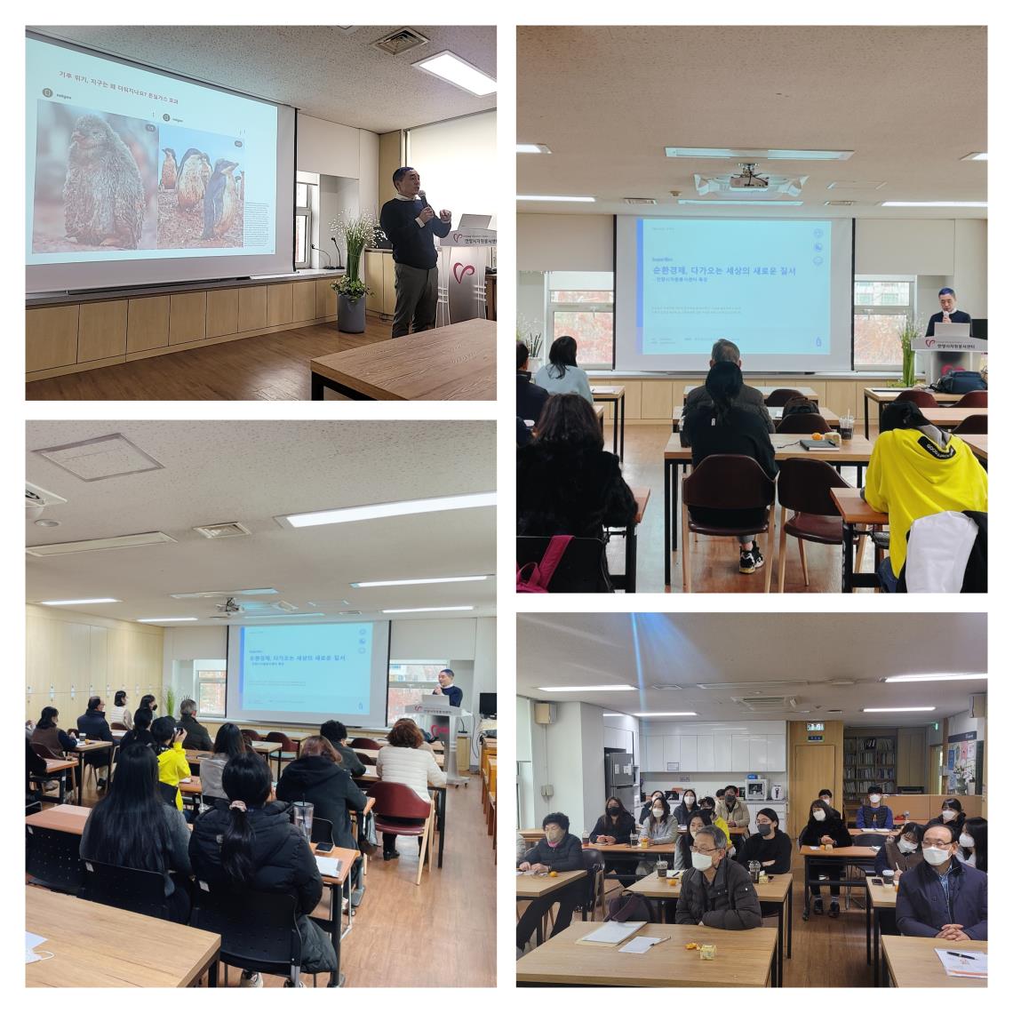 2022년 11월 직원역량강화교육은 쓰레기도 돈이다, 재활용도 놀이다' 라며 쓰레기를 버리는 것이 아닌 자원 순환의 가치로 재탄생시킨 친환경 스타트업 수퍼빈 김정빈 대표의 강의로 진행되었습니다. 기후위기 속에서의 순환경제의 중요성과 기후문제에 대응하기 위한 자세에 대해 생각해볼 수 있는 의미있는 시간이 되었습니다.