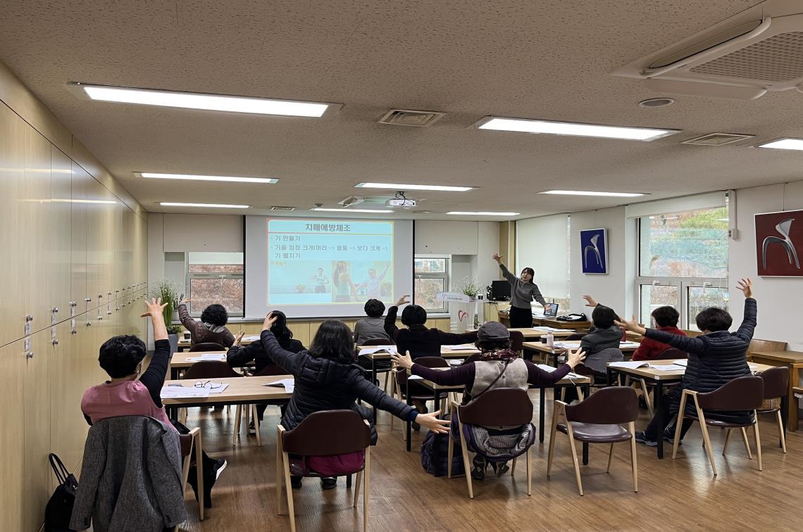 내용: 뇌신경을 자극하는 치매예방 운동방법, 신문을 활용한 인지훈련 방법 등