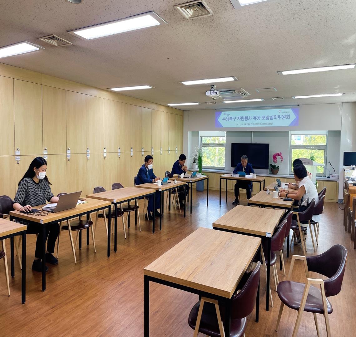자원봉사를 통해 수해복구 일상회복에 크게 기여한 개인 및 단체의 노고에 감사하기 위해 수해복구 자원봉사 유공자 심사를 위한 포상 심의위원회를 진행하였습니다. 빠른 수해복구 회복을 위해 힘쓰신 모든 자원봉사자들에게 다시 한 번 감사드립니다.