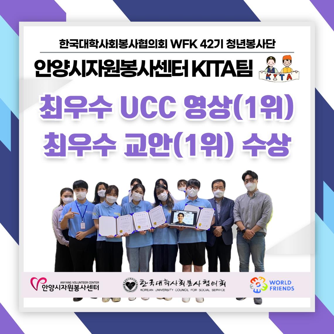 지난 8월 26일 진행된 한국대학사회봉사협의회 주관 wfk 42기 청년봉사단 해단식에서 안양시자원봉사센터의 인도네시아 KITA팀이 ucc영상과 교안 부문에서 모두 최우수 상을 수상했습니다.