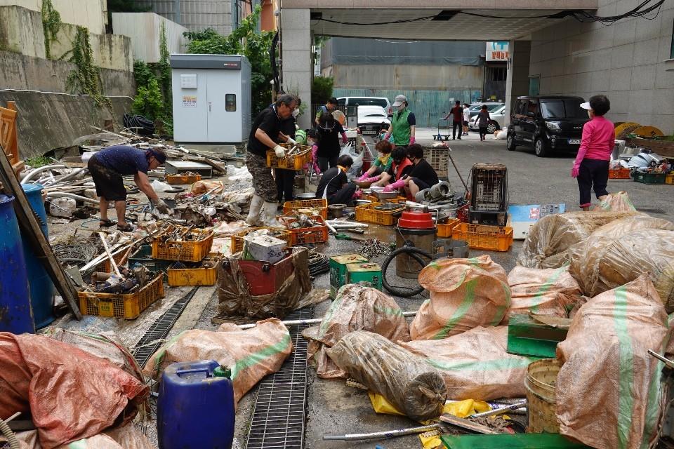 안양시 수해복구 현장에 많은 자원봉사자분들의 발길이 이어지고 있습니다.