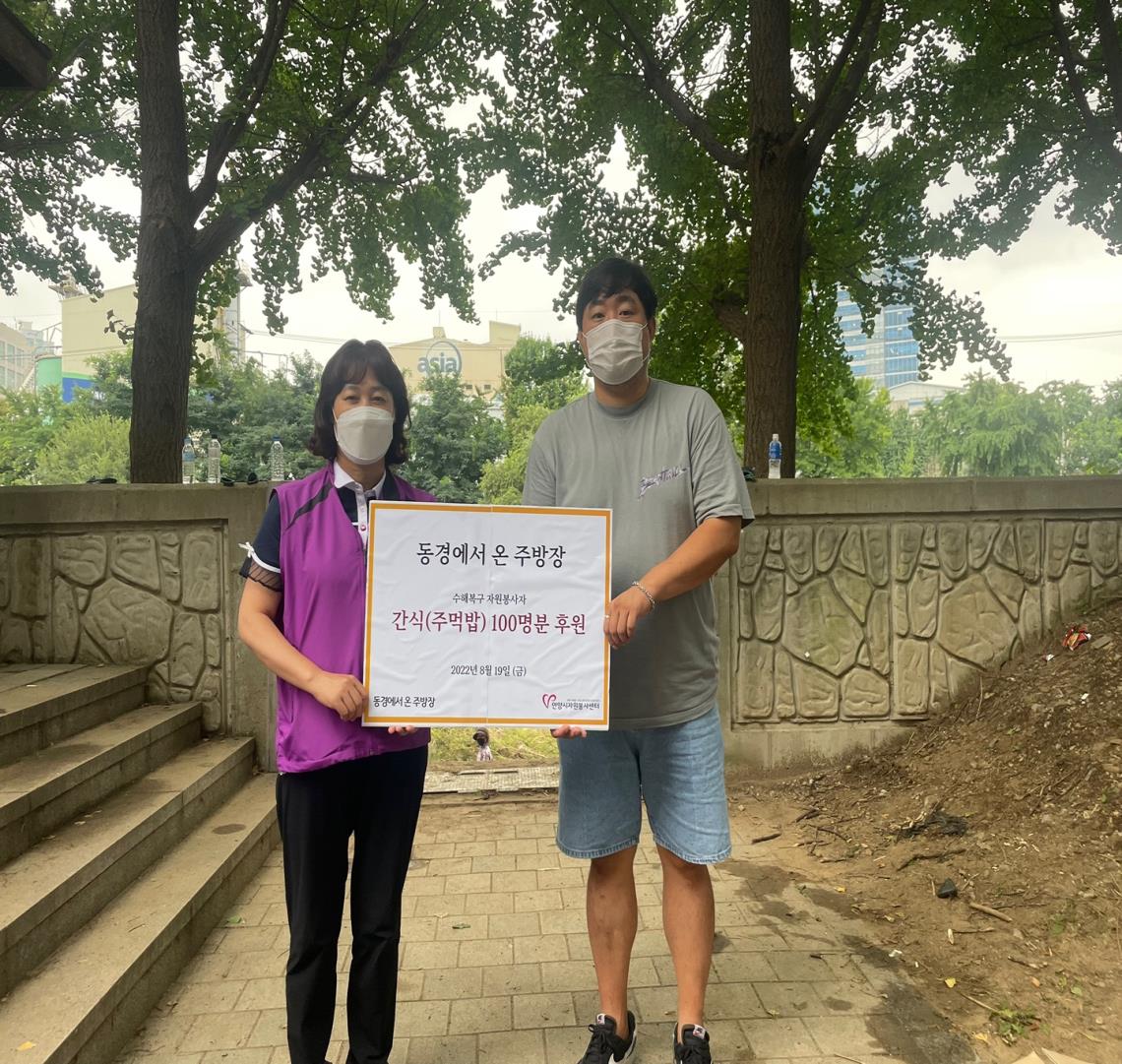 연락을 주셨습니다. 자원봉사자 및 수재민 분들에게 주먹밥 100인분을 직접 만들어서 후원해주셨습니다.