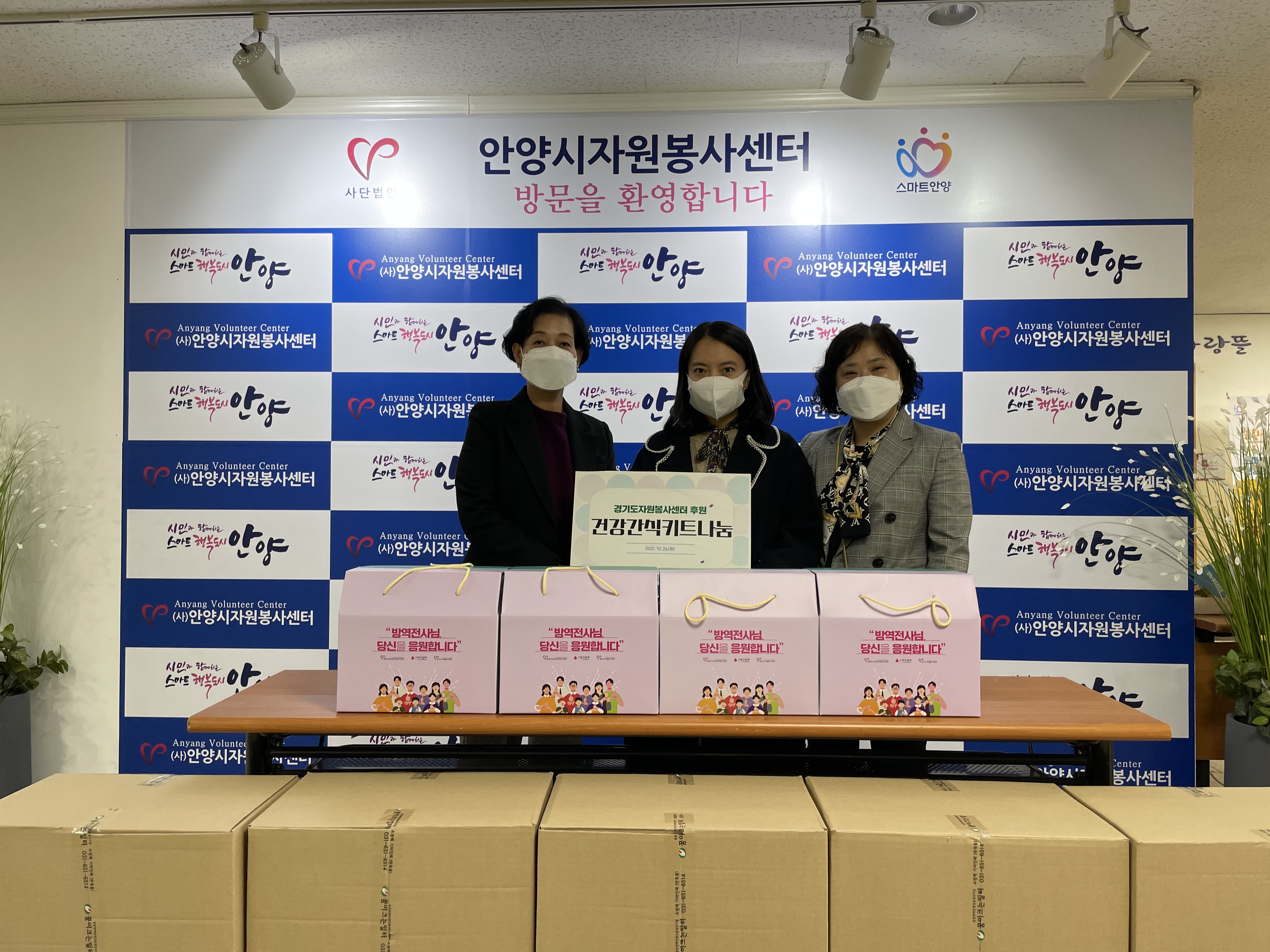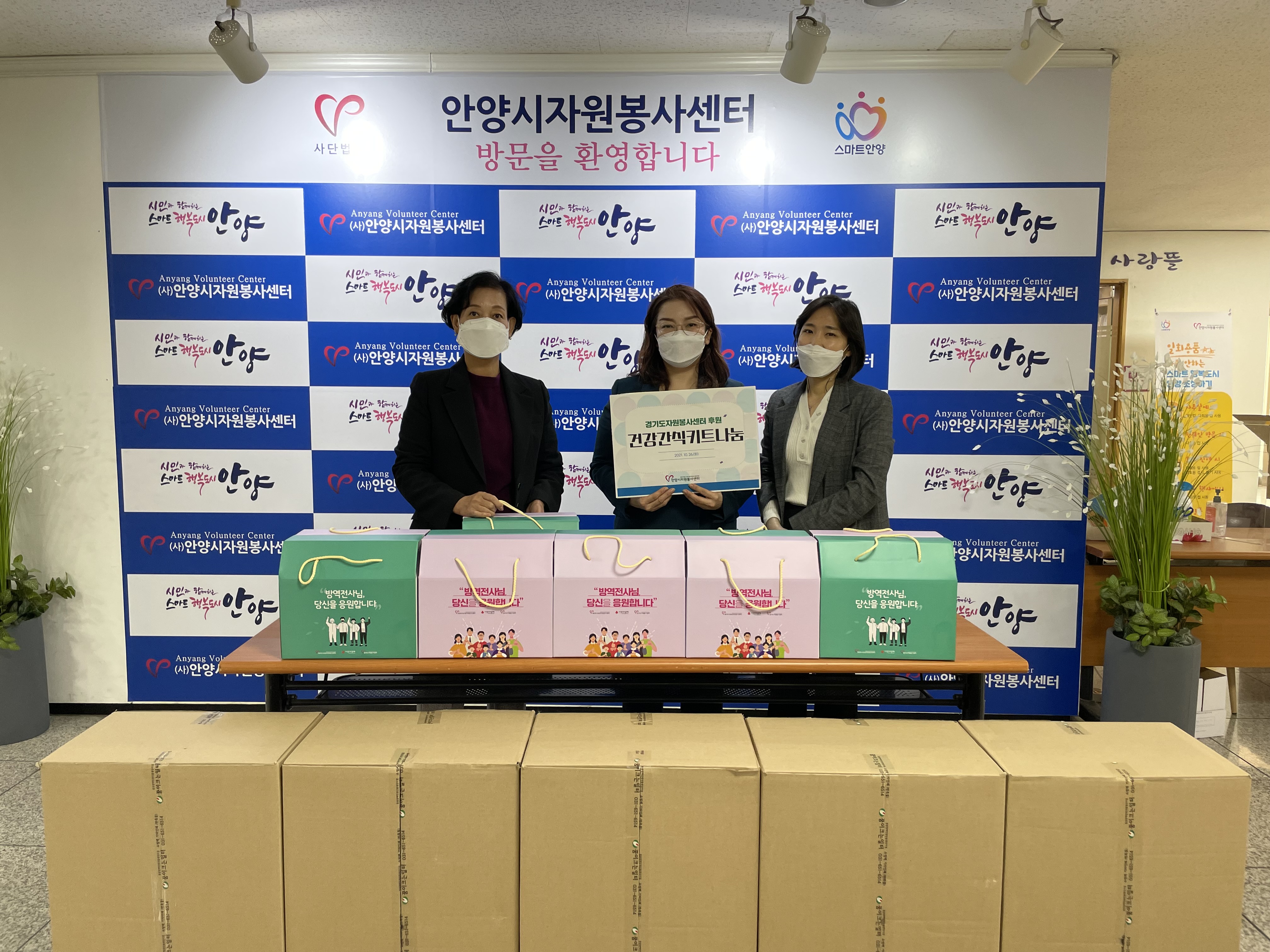안양시 관내 보건소 2개소에 경기도자원봉사센터에서 후원한 건강간식키트를 배분하였습니다
