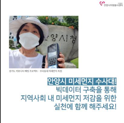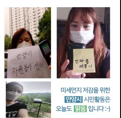안양시자원봉사센터 - 지역사회 내 미세먼지 저감을 위해 빅데이터 구축을 하고 있는데요. 이번에 경기도에서 7개 시군이 푸른 하늘을 위한 릴레이 캠페인을 함께 진행했습니다!
