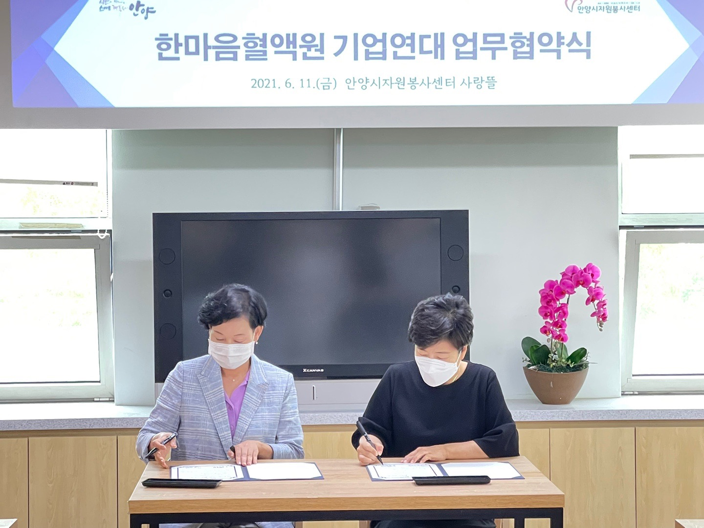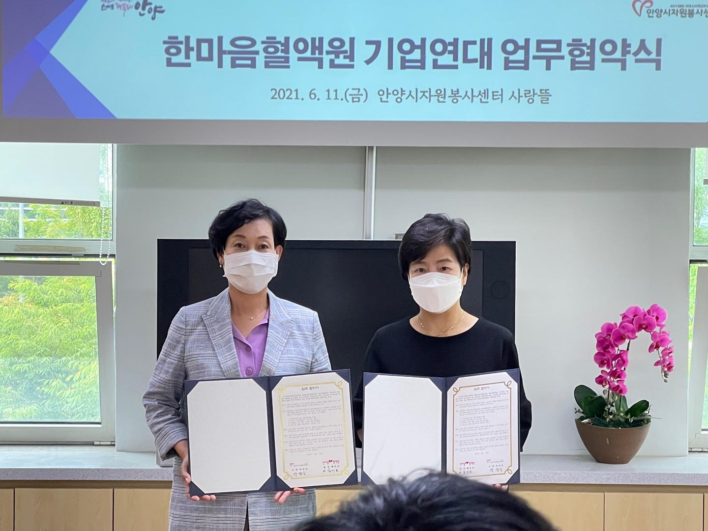 안양시자원봉사센터는 한마음혈액원과 지역사회 내 기업사회공헌의 활성화를 위한 업무협약을 체결하였습니다.