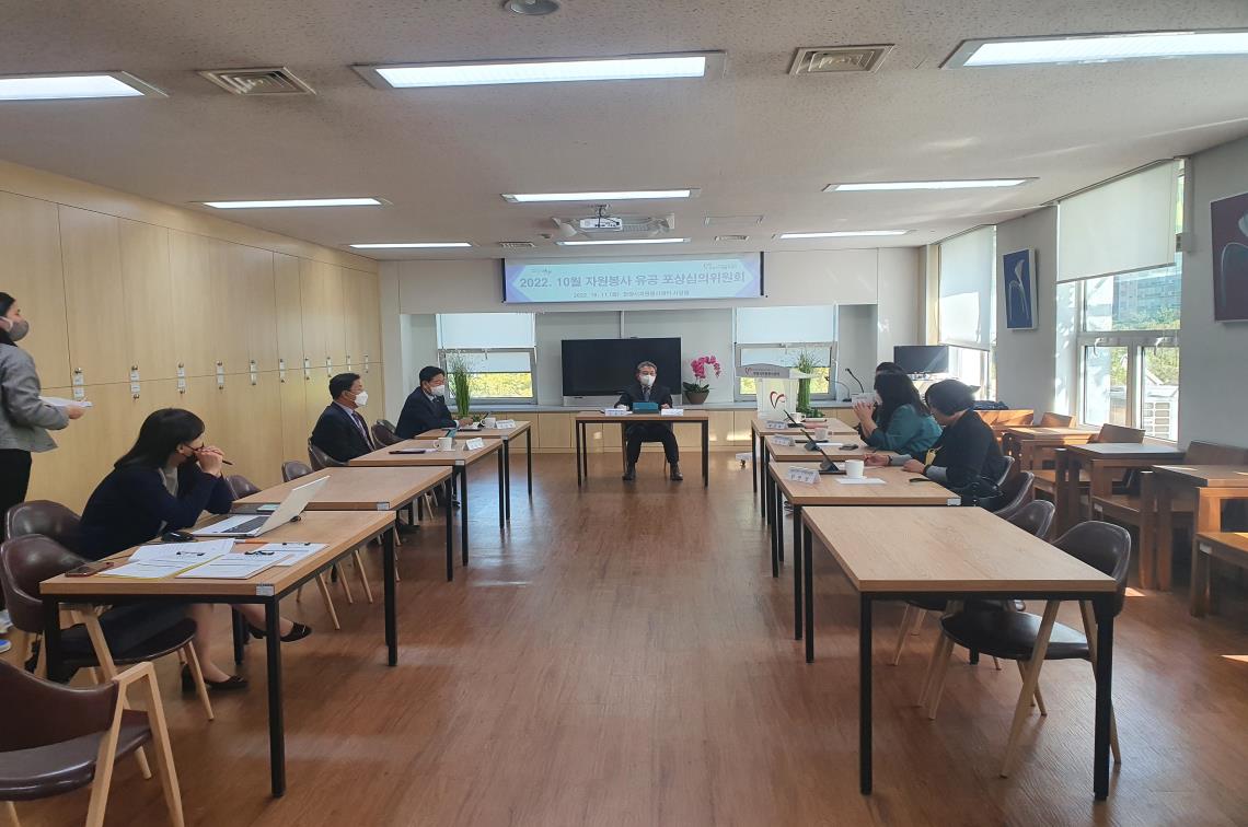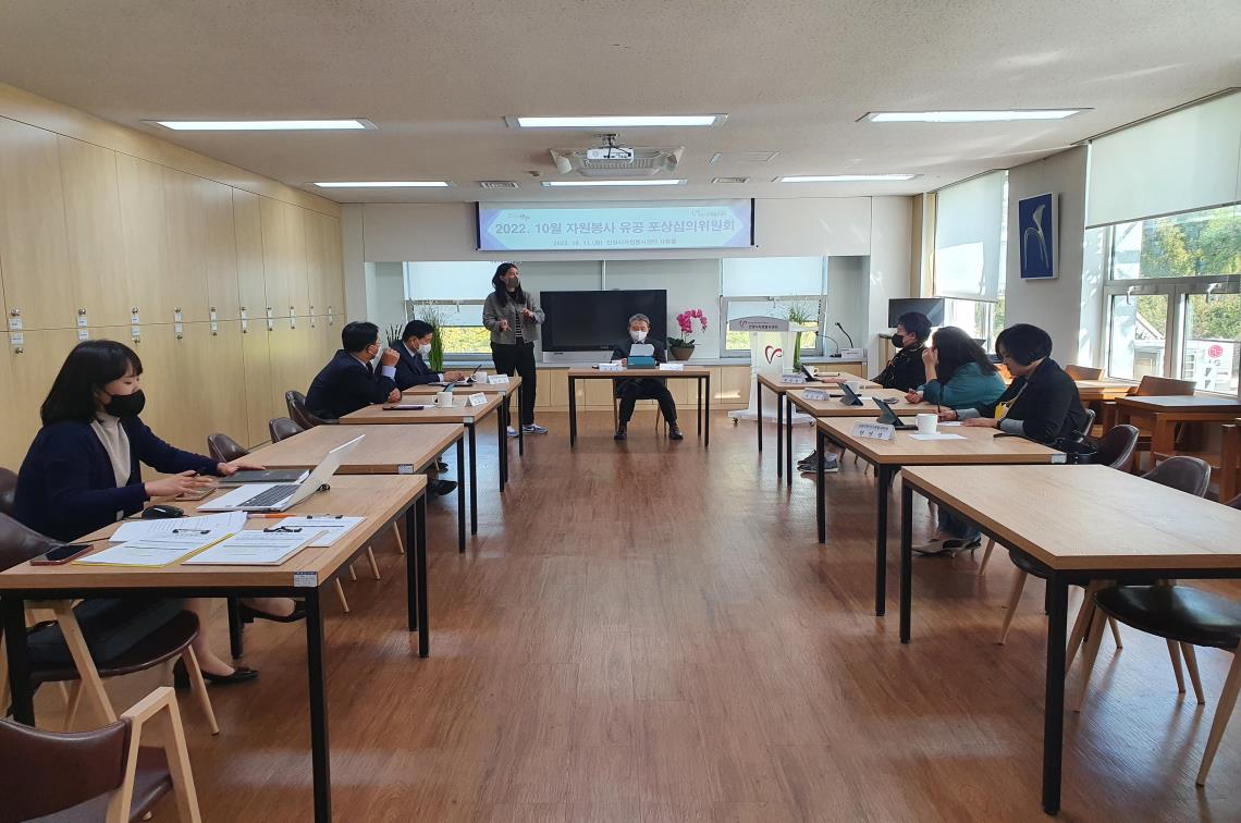 5가지의 심의 안건을 가지고 10월 자원봉사 유공표창 포상심의를 진행하였습니다.