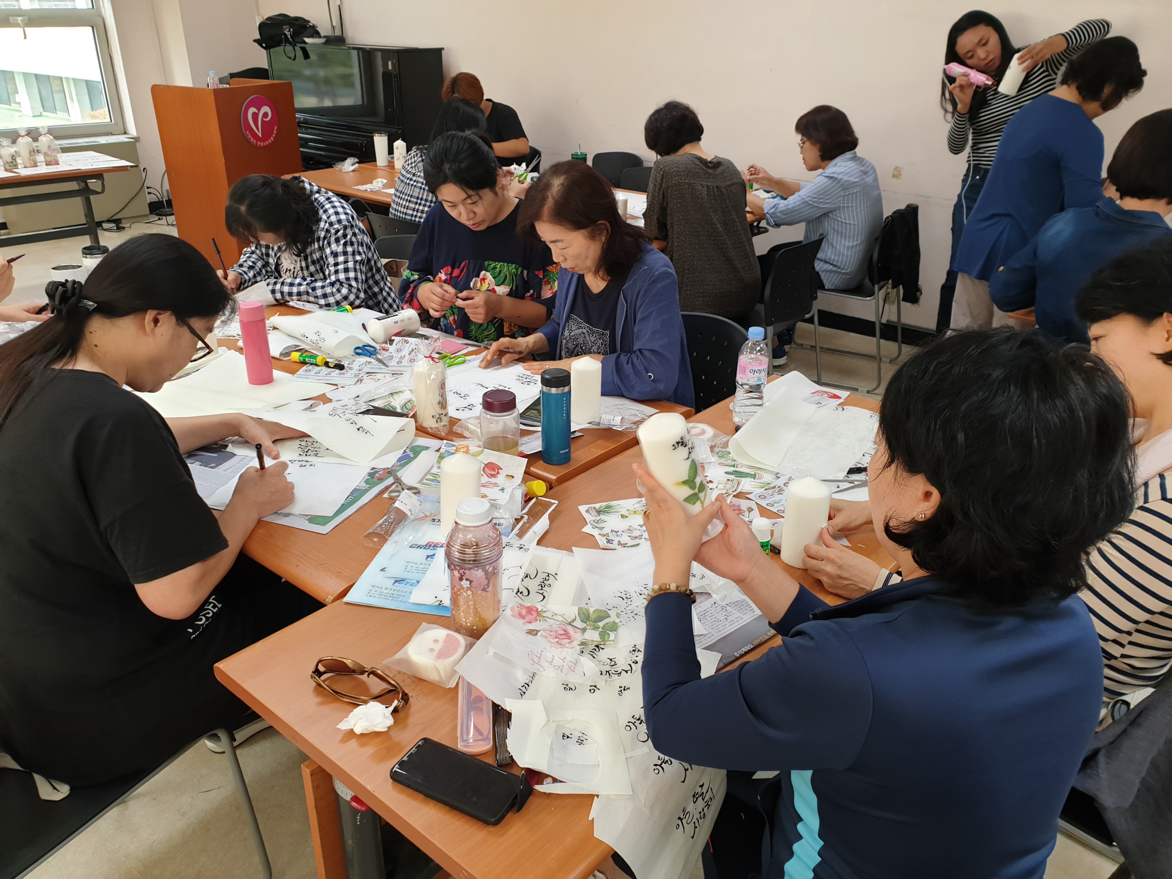 내용:1년이상 휴면상태인 봉사자와 기존봉사자분들이 함께모여 캘리그라피 양초 만들기 활동을 하였습니다.